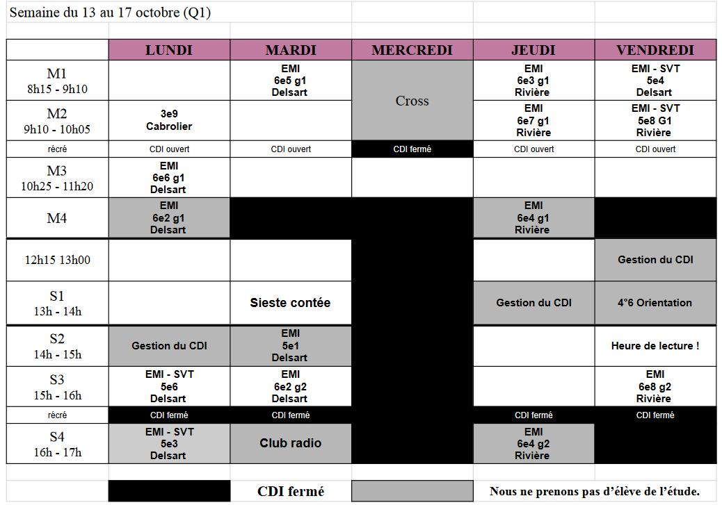 Emploi du temps de la semaine